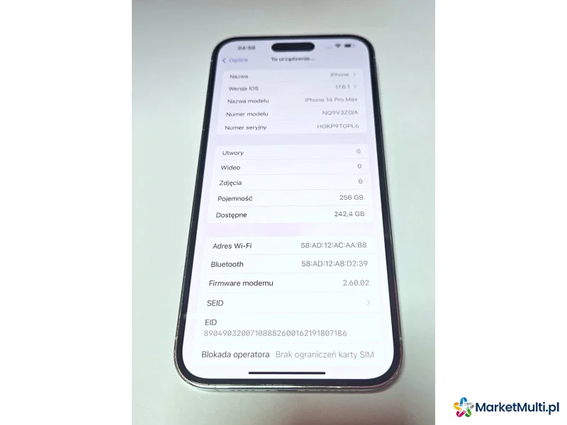 Oferujemy na sprzedaż używany telefon Iphone 14 pro max w kolorze srebrnym.